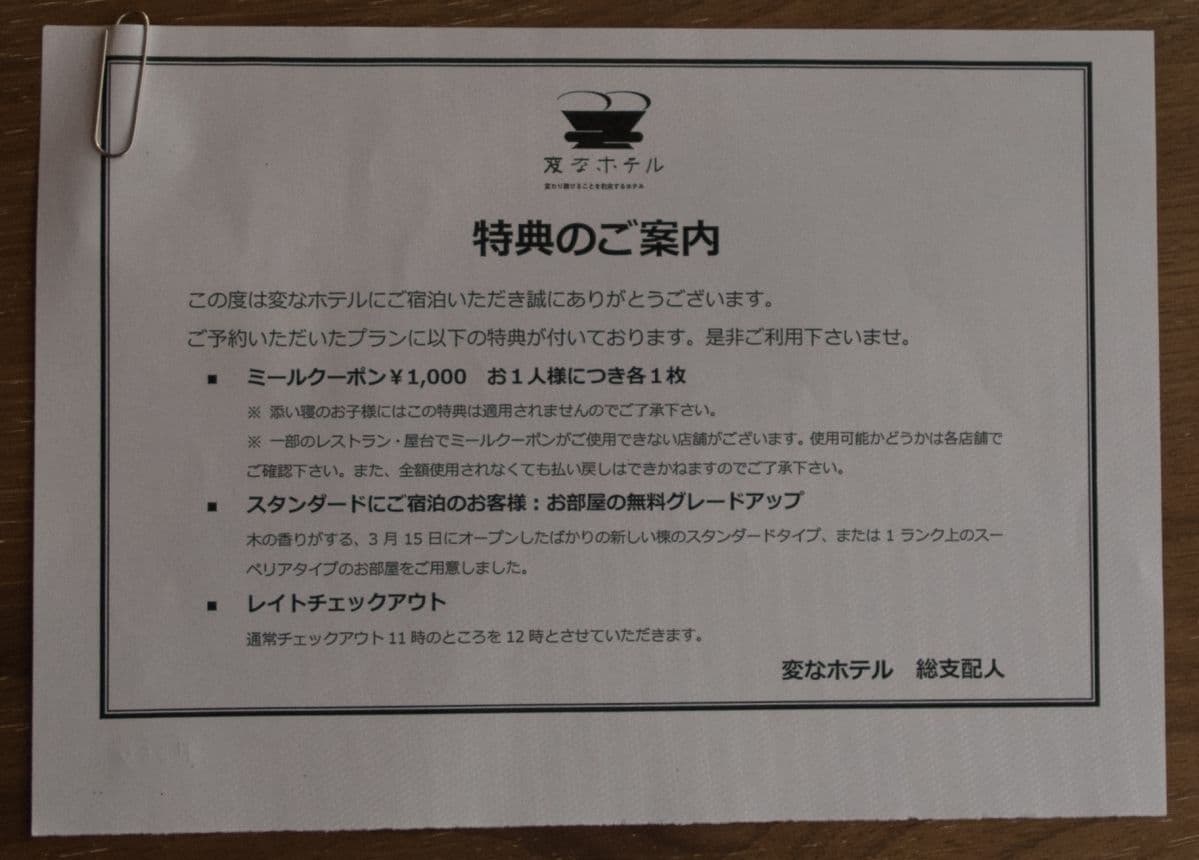 予約したプランに特典がついてたみたいでイーストアームがウェストアームになったみたいです。 おまけに食事券2,000円分とレイトチェックアウトまで。