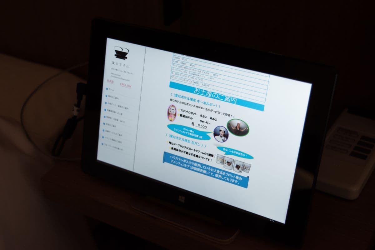 ベット脇にある変なホテルのインフォメーション端末。