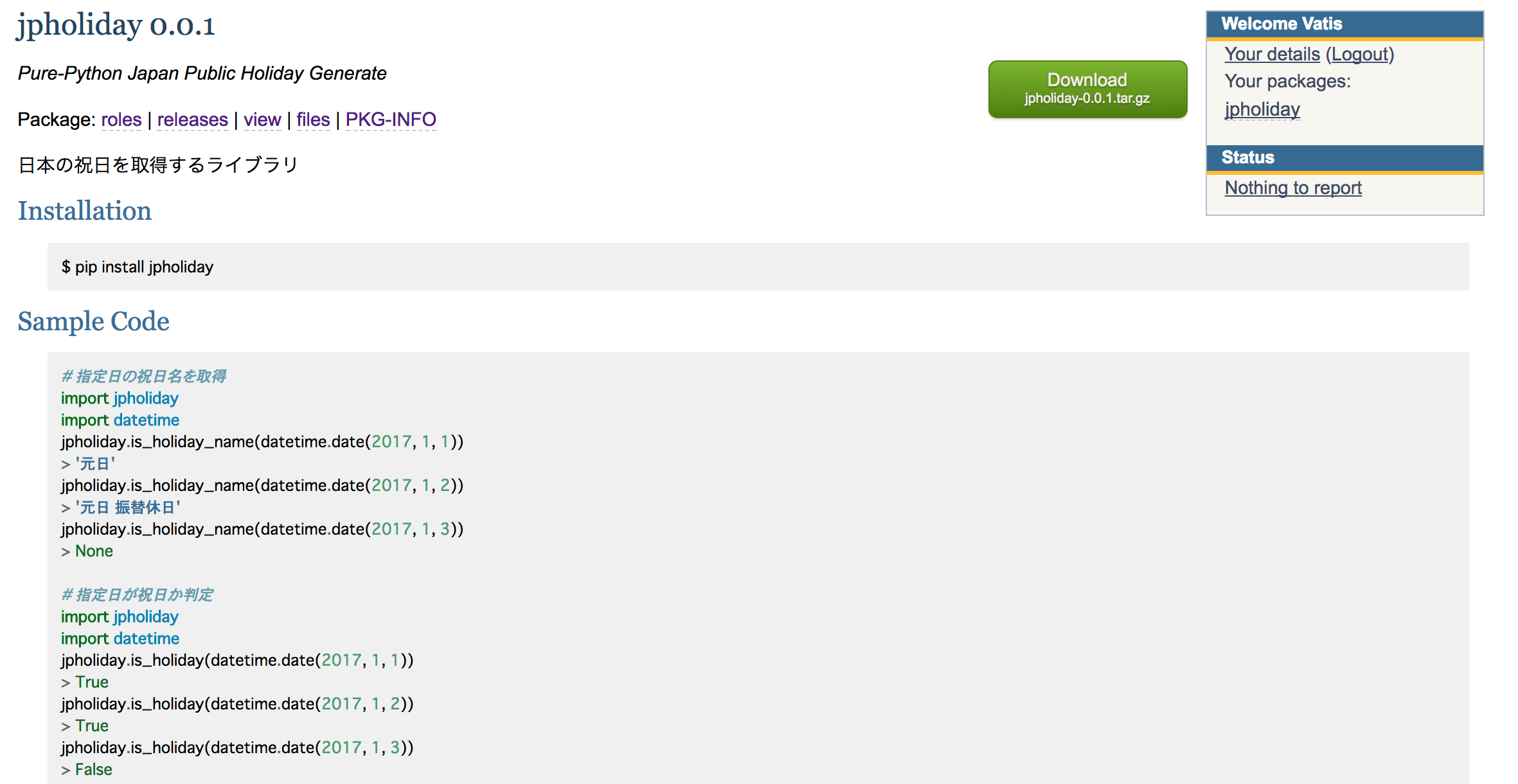 PyPI: jpholiday 0.0.1 : Python Package Index