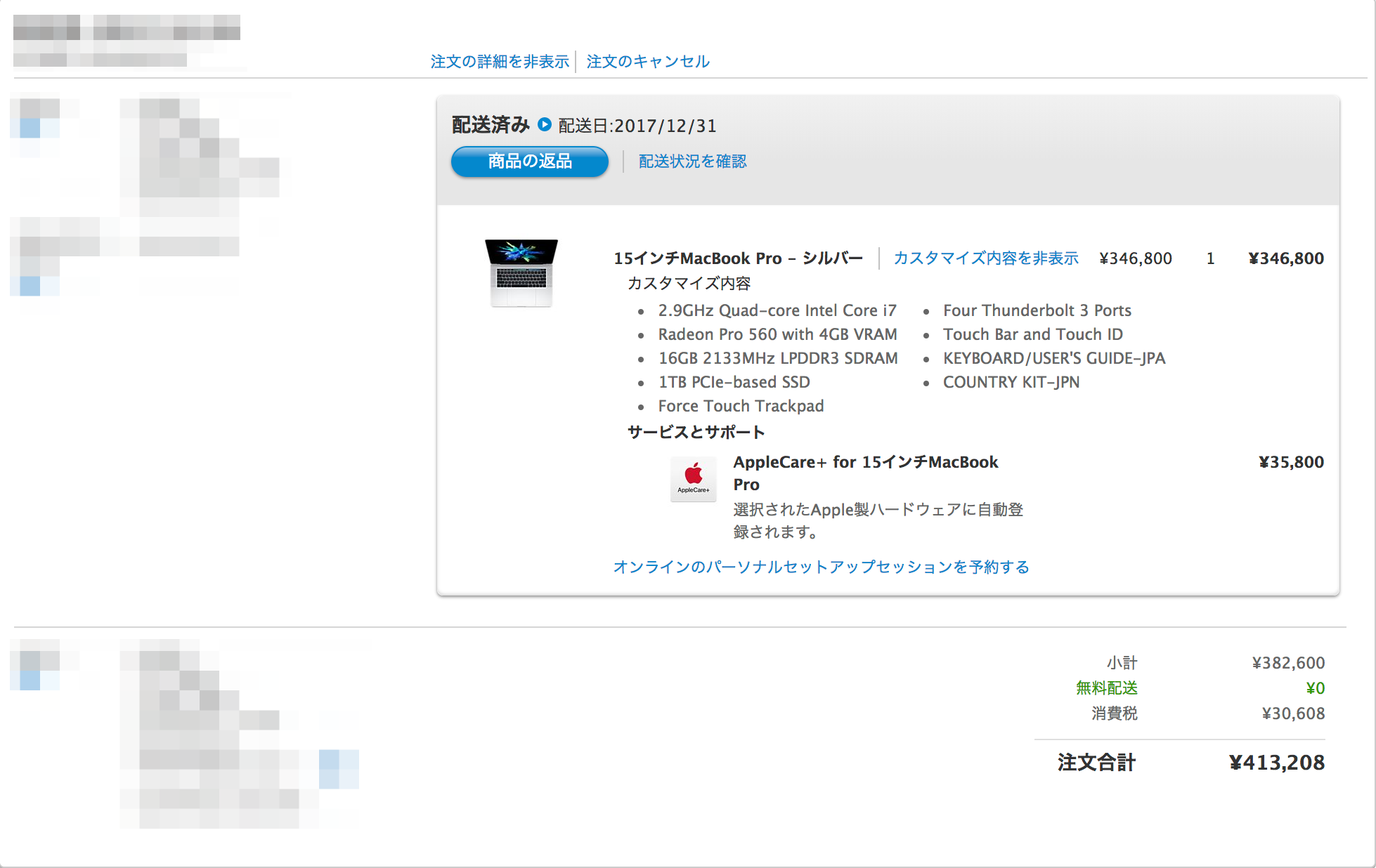 MBP15-inchの最上位モデルに、1TBSSDとUSキーボードを追加したところ、、